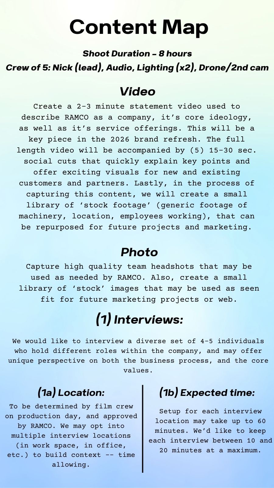 Working with Nick was an incredible experience from start to finish. Creating our rebranding video felt like a big and slightly awkward process at first, but Nick made it seamless. His passion and mastery of his craft truly shine through in every detail. He took the everyday moments that define our organization and turned them into something powerful and heart-touching. The final video exceeded all expectations - it perfectly captures who we are and what we stand for. Nick's creative vision and ability to tell a story through film is unmatched. This video will have a lasting impact on our organization, and we couldn't be more grateful for his exceptional work.